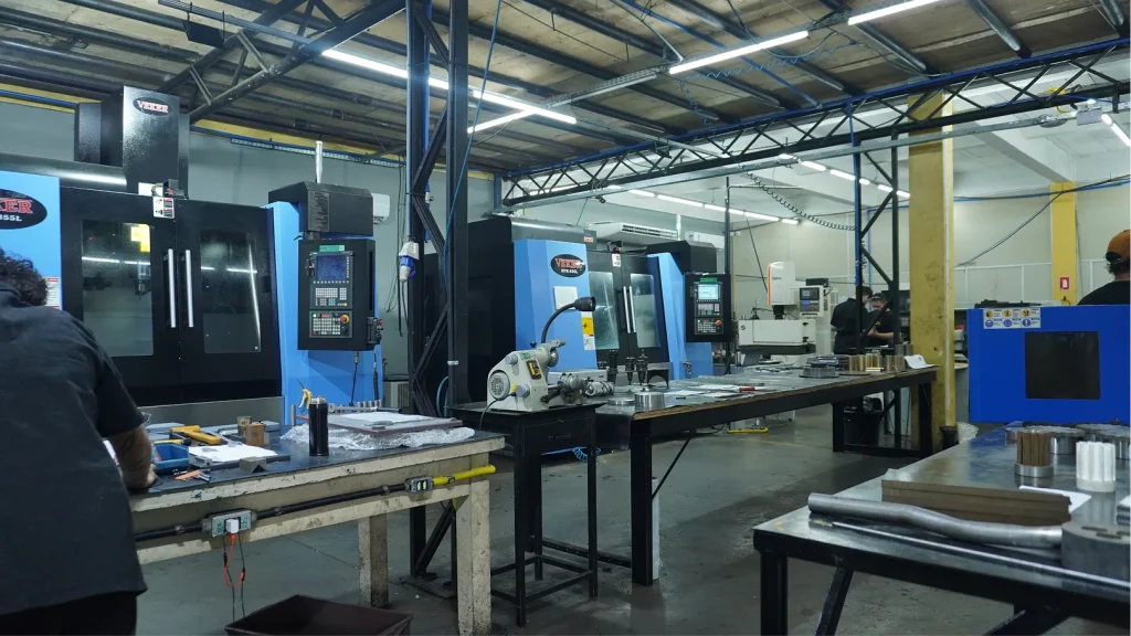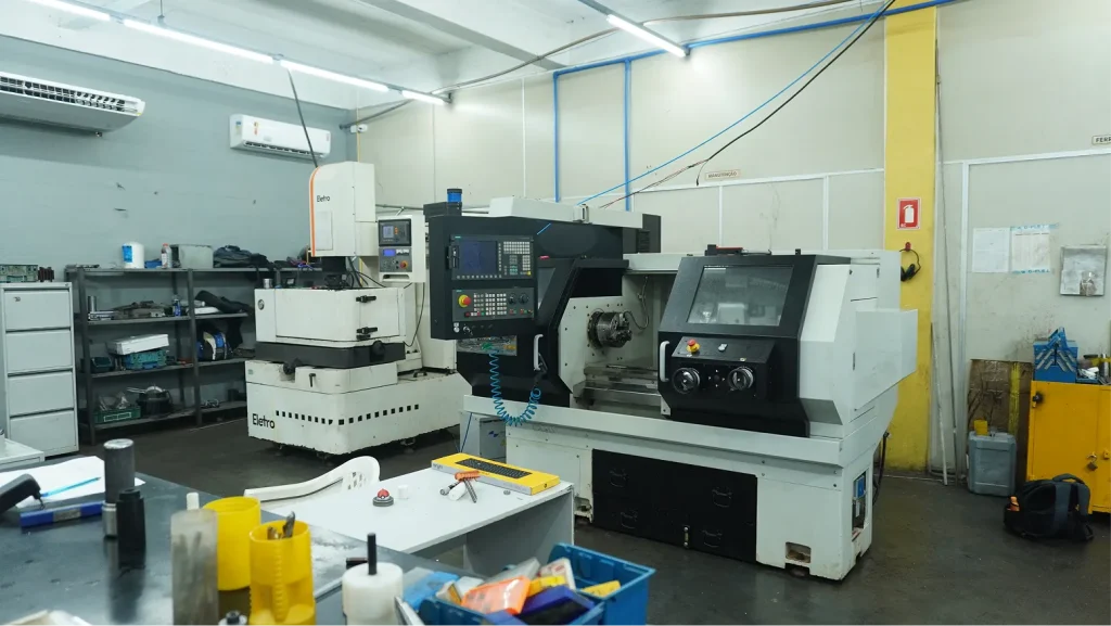 Nossa estrutura de usinagem industrial permite fabricar e recuperar peças técnicas com alto nível de precisão, atendendo desde demandas unitárias até produções seriadas. Trabalhamos com torno mecânico, CNC, fresadoras e processos especiais como erosão, garantindo acabamento perfeito e tolerâncias rigorosas.